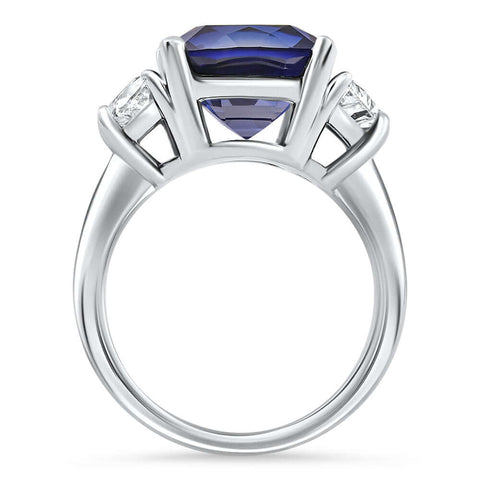8.50Ct TW Cushion Blue Sapphire & Diamond 3-Stone Ring 14k White Gold Lab Grown