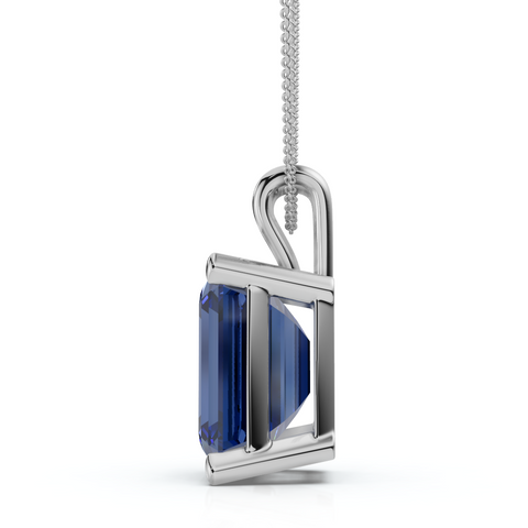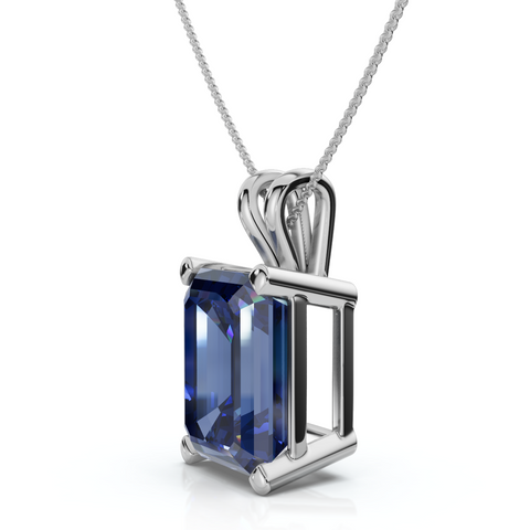 8Ct Emerald Cut Blue Sapphire Pendant 14k Gold 18" Necklace 1/2" Tall Lab Grown