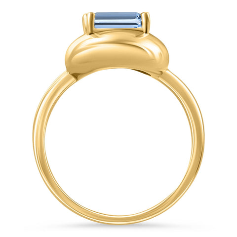 Candy Button 14k Yellow Gold Emerald Cut Aquamarine Ring