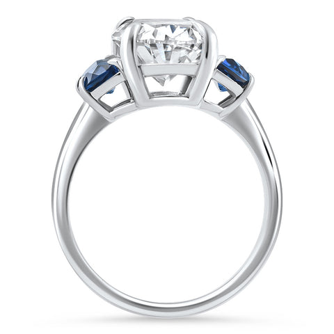 Certified 4.70Ct Oval Diamond & Blue Sapphire Ring 14k White Gold Lab Grown