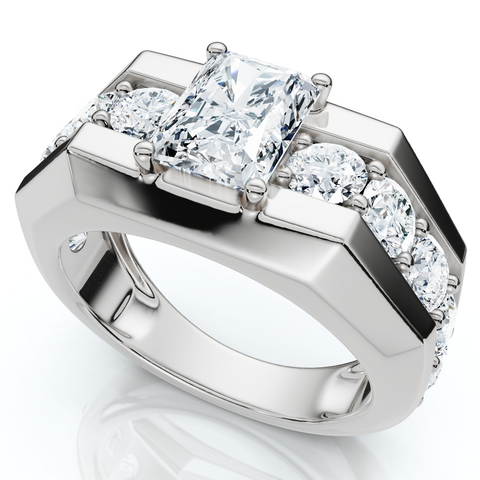 Certified 6 1/2Ct Men's Radiant Cut Diamond Ring 14k Gold Lab Grown FG/VS
