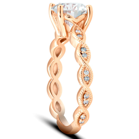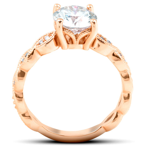 2 1/10Ct Diamond & Moissanite Vintage Engagement Ring 14k Rose Gold
