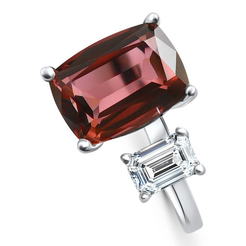 Genuine Tourmaline & Lab Grown Diamond Ring 14k White Gold Size 6