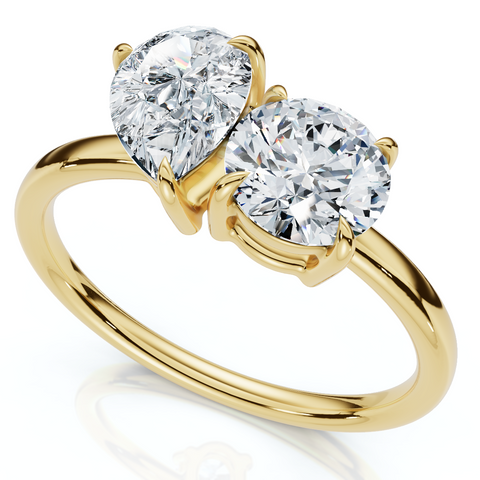1 1/2Ct Round and Pear Toi et Moi Diamond Ring 14k Gold or Pt Lab Grown