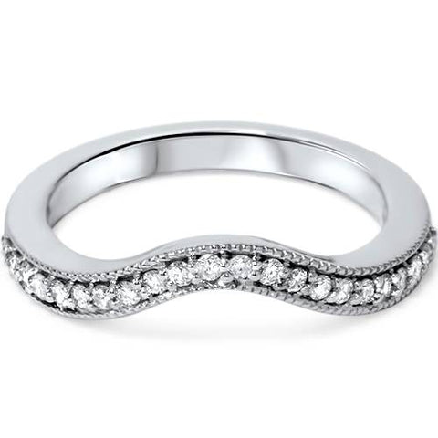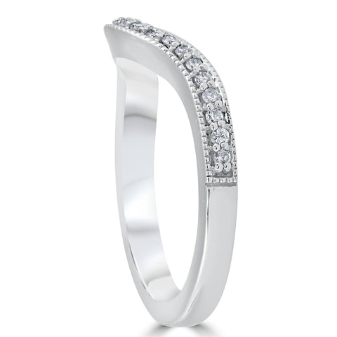 1/5ct Curved Diamond Wedding Band 14K White Gold