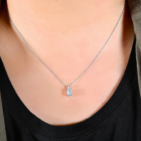 2 Ct Emerald Diamond Solitaire Pendant 14k White Gold Lab Grown