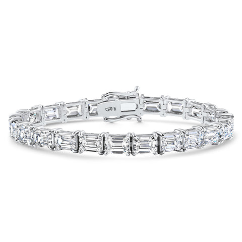 26Ct Emerald Cut Diamond East West Tennis Bracelet 14k Gold Lab Grown 7"