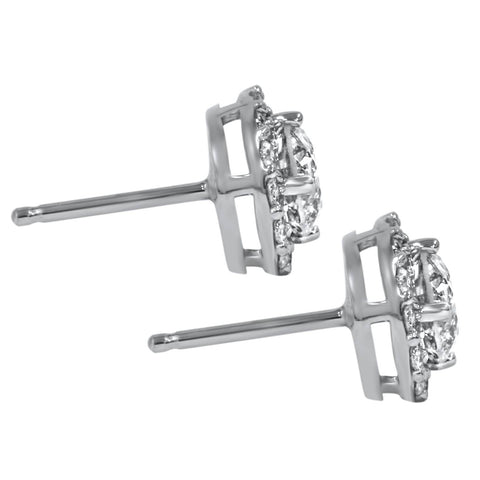 1 7/8ct Halo Diamond Studs 14K White Gold