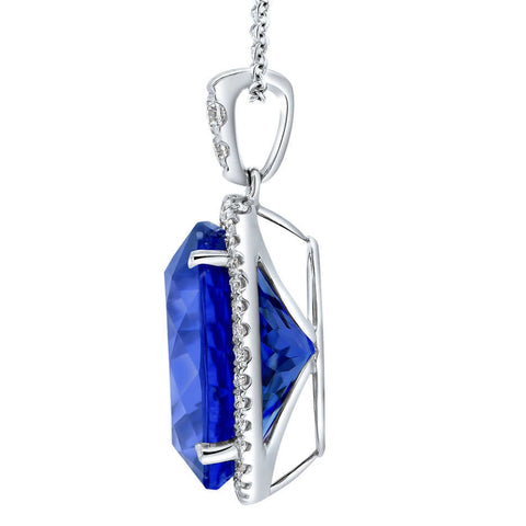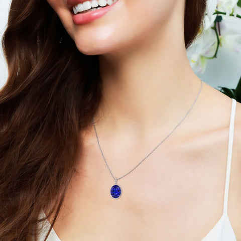 5 Ct TW Oval Tanzanite & Lab Grown Diamond Halo Pendant 14k White Gold Necklace