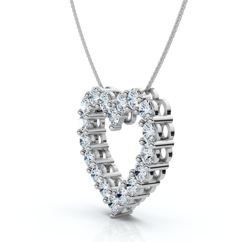 4Ct Diamond Heart Pendant 14k Gold Lab Grown 1 1/10" Tall 18" Necklace