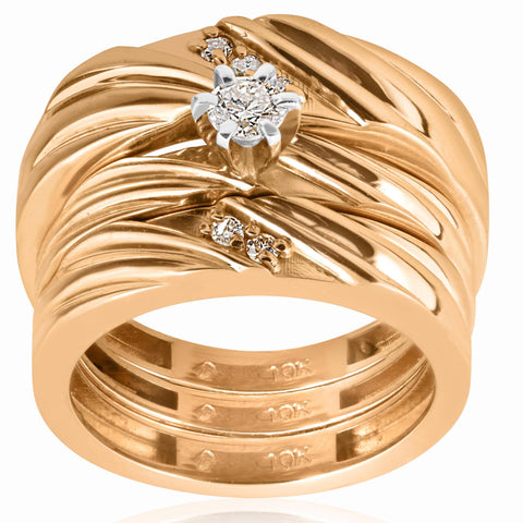 1/3ct Diamond Engagement Trio Wedding Band Set 14K Yellow Gold