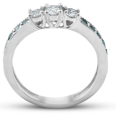 1/2 Ct Blue & White Diamond Three Stone Engagement Anniversary Ring White Gold