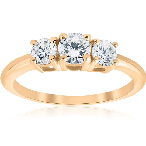 1ct 3 Stone Diamond Engagement Round Cut Ring 10k Yellow Gold
