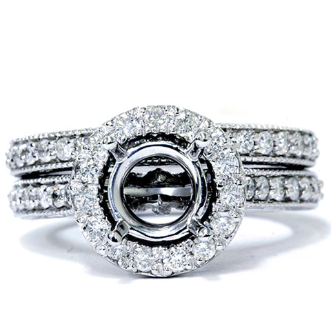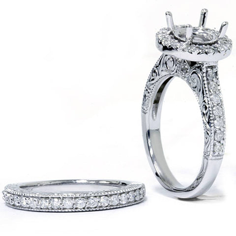 1ct Vintage Engagement Ring Set Semi Mount 14K White Gold