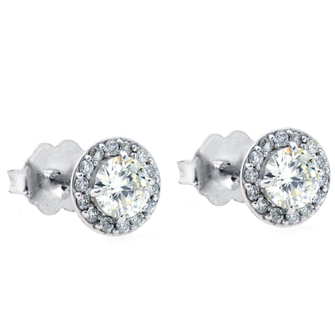 3/4ct Halo Diamond Studs 14k White Gold 6.2mm wide