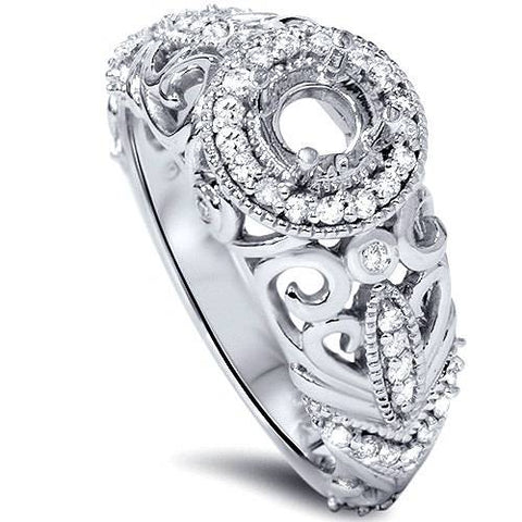 3/8ct Vintage Diamond Engagement Ring 14K White Gold
