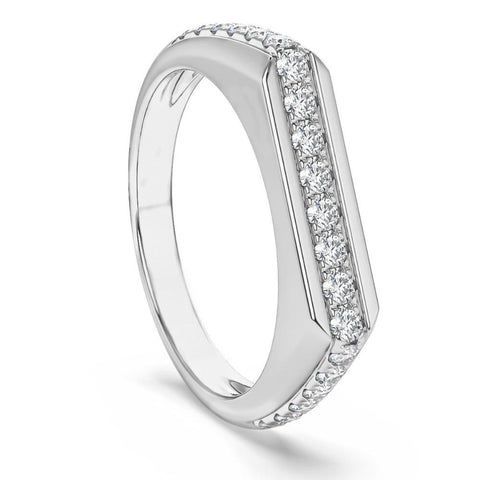 Personalize your wedding band with up to 26 characters including spaces. We offer a legible block font for all rings without diamonds.