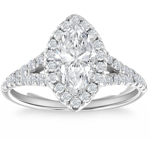 Certified 1.50Ct Marquise Diamond Engagement Ring 14k White Gold Lab Grown