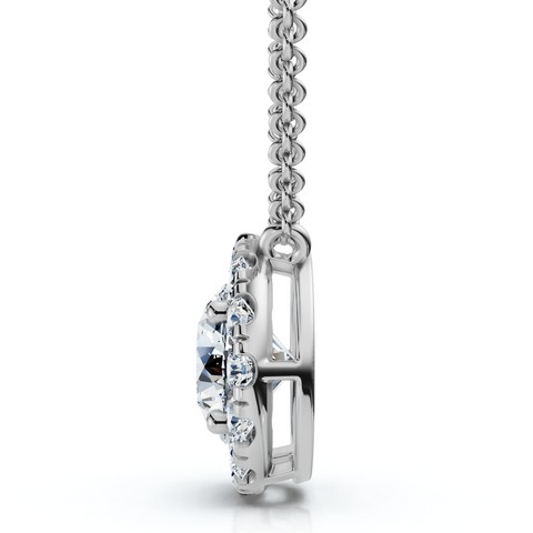 Certified 3Ct Halo Diamond Solitaire Pendant 14k White Gold Lab Grown Necklace