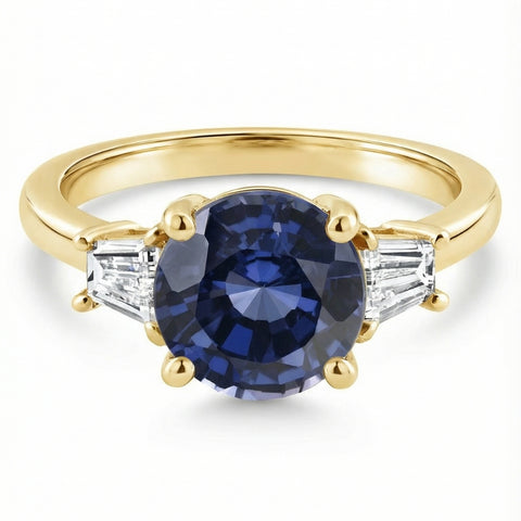 4 3/4Ct Blue Sapphire & Diamond Engagement Anniversary Ring Gold Lab Grown