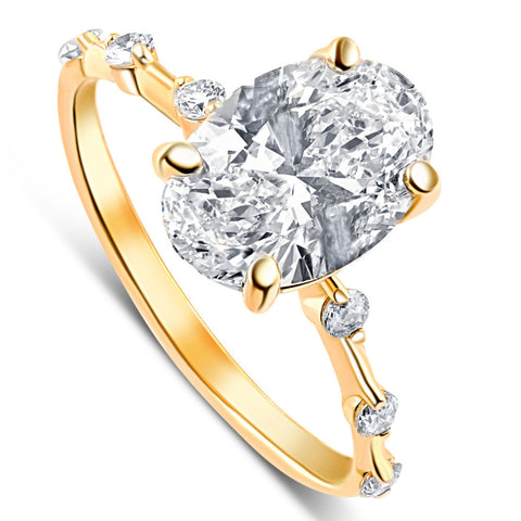 1 1/2Ct Oval Diamond Engagement Side Stone Ring Gold Lab Grown
