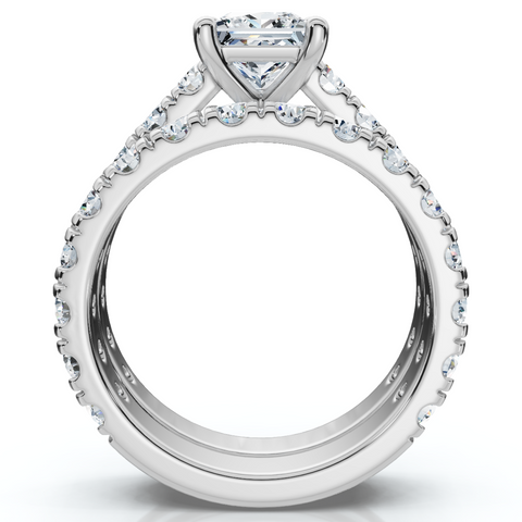 Certified 3Ct Princess Cut Diamond Engagement Ring Set 14k Gold Lab Grown
