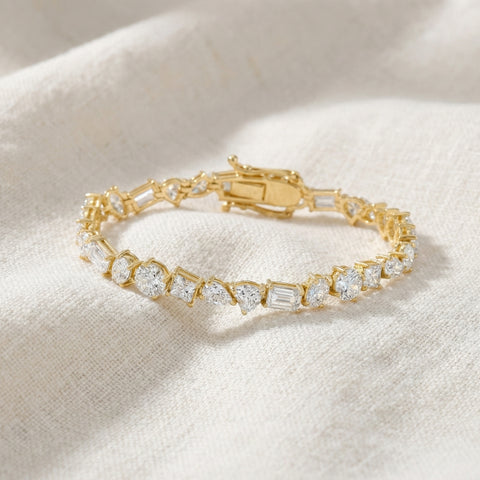 F/VS 15Ct Mixed Fancy Cut Diamond Tennis Bracelet 14k Gold Lab Grown 7"
