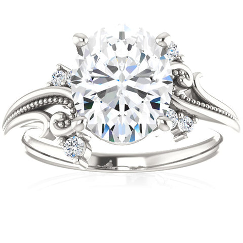 2 1/5 Ct Oval Moissanite & Lab Grown Diamond Engagement Ring 14k White Gold