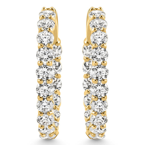 5 1/2Ct Diamond Inside Outside Hoops 14 Gold Earrings Lab Grown 1" Tall