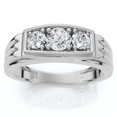 3/4Ct Men's 3 Stone Diamond Wedding Anniversary Ring in 14k Gold Lab Grown