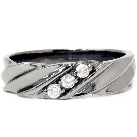 1 1/10ct Black Diamond Brushed Wedding Mens Eternity Band 14K Black Gold