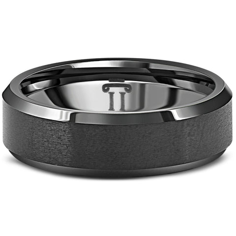 Men's Brushed Black Tungsten 6mm Beveled Ring Wedding Band