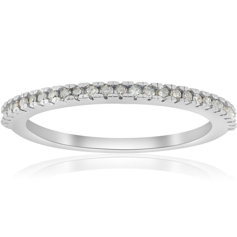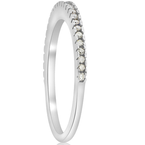1/10ct Pave Diamond Wedding Ring 10k White Gold Stackable Womens Thin Band