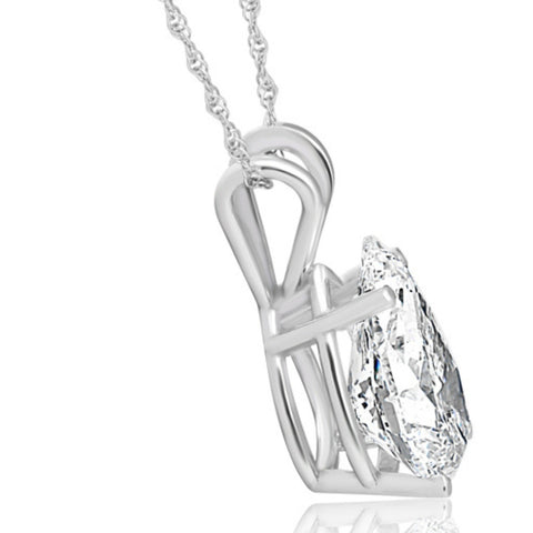 1Ct Pear Solitaire Diamond Pendant Necklace 14k White Gold Lab Grown