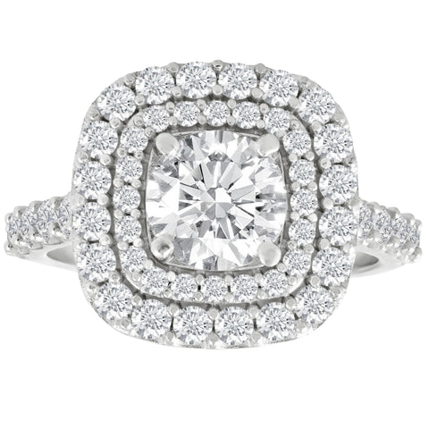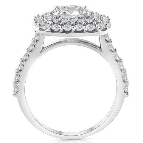 2 Ct Diamond Double Cushion Halo Engagement Ring 14K White Gold