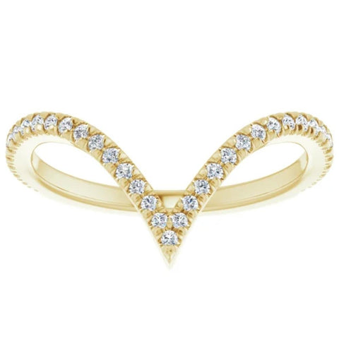 1/4Ct Diamond V Shape Ring Contour Stackable Band in White, Yellow, or Rose Gold