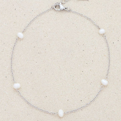 Max Anklet Silver Plated 9.5" 5mm Freshwater Pearls Lobster Clasp