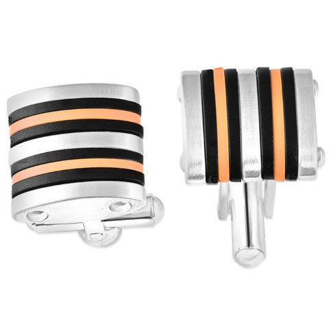 Men's Polished Stainless Steel Brushed Black And Orange 16mm Cufflink