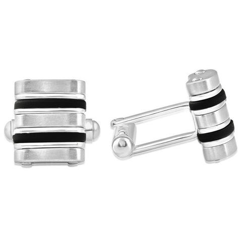 Men's Polished Stainless Steel And Brushed Black Striped 12.5mm Cufflink