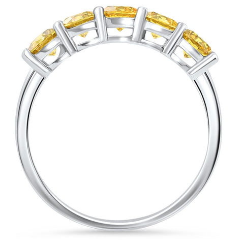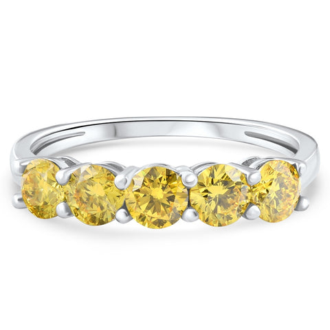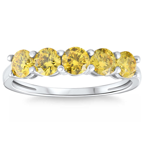 1Ct Fancy Yellow Diamond Five Stone Wedding Ring 14k Gold Lab Grown