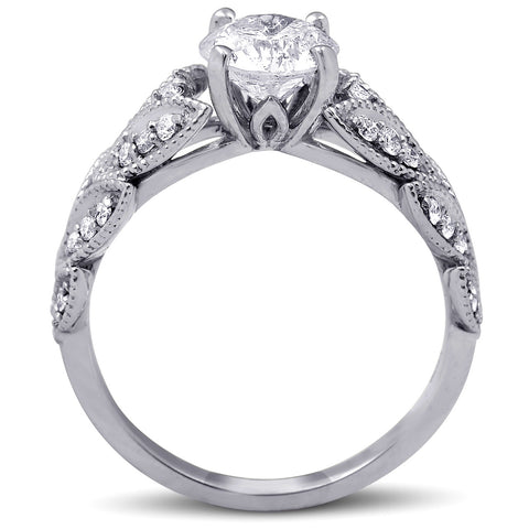 1ct Diamond Engagement Ring Petal Vine Leaf 14k White Gold Enhanced