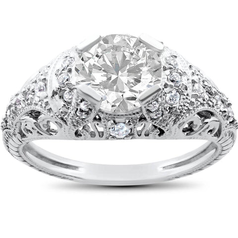 Vintage Enhanced Diamond Engagement Ring 1 1/5ct 14K White Gold