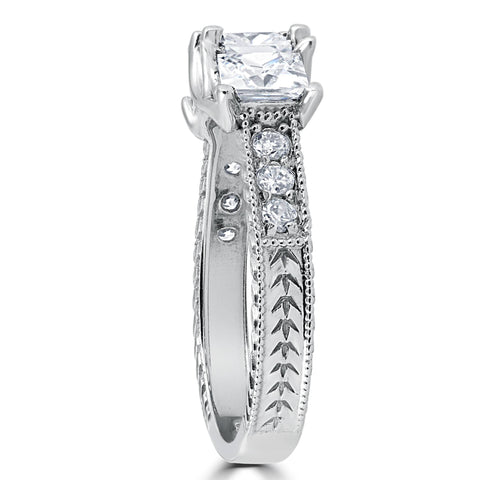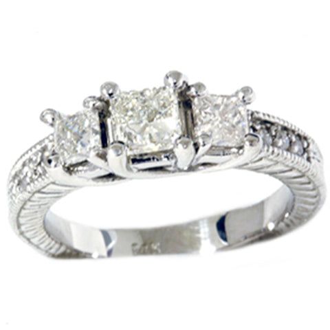1 3/4ct Vintage Three Stone Diamond Ring 14K White Gold