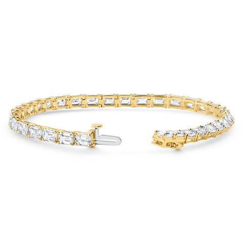 12Ct Emerald Cut Diamond East West Tennis Bracelet 14k Yellow Gold Lab Grown