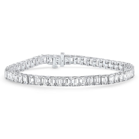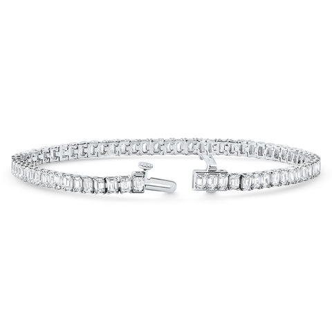 15Ct Emerald Cut Diamond Tennis Bracelet 7" 14k White Gold