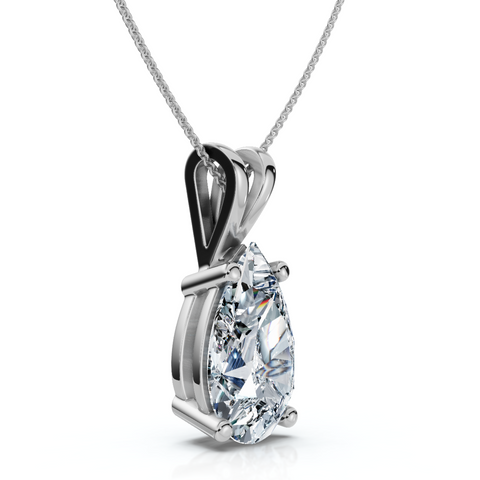 4Ct Solitaire Pear Shape Diamond Pendant Lab Grown 14k Gold 18" Necklace