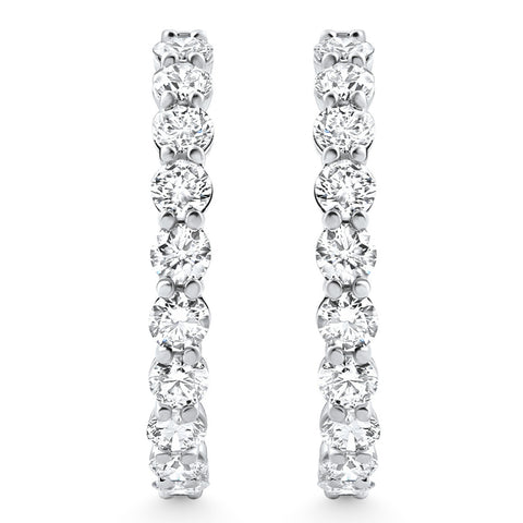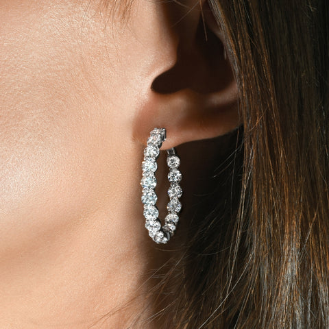 7Ct TW Round Diamond Inside Outside Hoops Vault Lock 14k White Gold Lab Grown