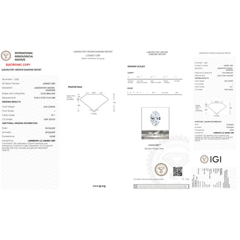 This appraisal certificate confirm the authenticity for your jewelry and recognized by all insurance companies. Color, clarity, carat weight, metal content, authenticity, and replacement value are all graded on this certification.
