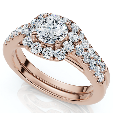 1 1/10Ct Cushion Halo Diamond Engagement Ring & Matching Band Gold/Pt Lab Grown