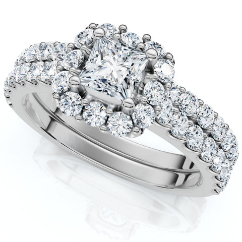 1.50Ct Princess Cut Halo Diamond Engagement Wedding Ring Set 14k Gold Lab Grown